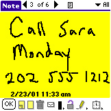 new note. In his own handwriting, he pens: Call Sara Monday 202 555 1212