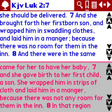 The Treo's keyboard offers some nice shortcuts as well. W toggles to/from splitscreen mode, F brings up the Search screen, and Backspace/Spacebar go back/forward one chapter. I found a full listing at this FAQ page . One nasty key is J, which seems to freeze BibleReader completely. If you accidently do this, press the Treo's Home button to exit the application.