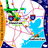 The right-side of the screen has a zoom slider, a control to draw a zoom box for a specific area, a link to the US map, and an eye icon for specifying which items to show on the screen. Houston has 2-3 gas stations at almost every exit, so there are a lot of icons on that screen.