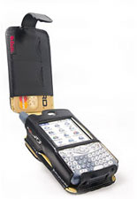 At first glance, the Handit Platinum looks like any other flip lid case. Its lid has two SD card slots and room for a credit card. There are cutouts on the front for the LED, ear speaker, mic, HotSync, and audio port. The keyboard and buttons on the Treo are covered by plastic. I have never liked plastic coverings, but the Handit Platinum is the first case that didn't seem to bother me when typing. I could even type well enough when using the flat part of my thumbs as opposed to the tips. Most plastic coverings I have seen are too tight, causing extraneous keys to be pressed when typing, but I didn't have this issue with the Handit Platinum.