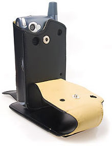 Where the Handit Platinum differs from other flip lid cases is its hinge. Other cases usually have a cutout for the camera, exposing it to damage. The Handit Platinum takes a different tactic, in that its lid hinge is almost at the bottom of the rear of the case. A snap holds the back lid in place. Undo the snap and you can fold the lid all the way down or just let it dangle behind the case so you can take pictures. It's certainly a unique feature on a case. If you work in an environment where camera phones are discouraged, this case would certainly hide the camera on the Treo.
