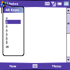 The only notable difference in the keyboard is not in the hardware of the keys, but in the way that the alt key works. On all Treos prior, to enter symbols or accented characters, one would type a related character, and press Alt. On the Treo 700w, this process has been reversed; you first type alt to get a list of all characters and symbols, and than a key to narrow the list down. So to get an à, you would press Alt and than a.