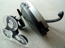 Color-wise, the Jabra SP500 is an unremarkable dull grey top with a darker gray base. The windshield mount uses three suction cups and swivels and rotates this way and that for proper orientation. The speakerphone also ships with a visor clip and a car charger. If youre one of the few smokers left in the world, I suppose this last accessory wont do you much good.