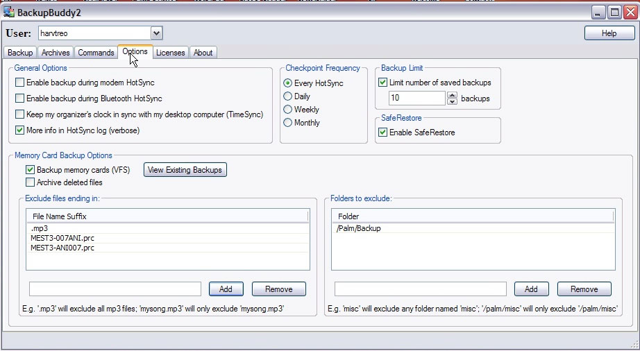 BackupBuddy 2 protects everything on your Treo, including whatevers on its storage card, by keeping it all in a database on your PC, all changes made since your last backup. BB2 can bring back copies of your programs, data files and settings in the event of any emergency.
