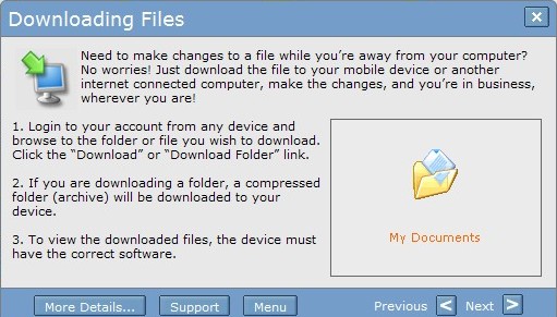 Or, you might have your own private Web or FTP hosting space (in fact, you probably have a few meg of hosted storage as a freebie with your ISP account and youve never even used it) where you can upload your files so you can get to them or share them remotely, but uploading masses of files is tedious, and hosted space usually has a storage cap on it. Most ISPs give you five or ten meg for your monthly fee and thats it. Go over that limit and you either have to start deleting stuff to make room for new stuff or pay your ISP for excess storage - a workable solution, as long as you remember to upload your files and not go over your storage limit.