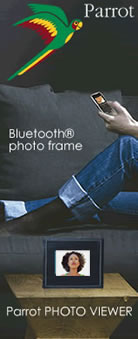 Another company out to free your photos from your cell phone is Parrot , a world innovator in Bluetooth technology. At CTIA, they announced their Parrot PHOTO VIEWER that lets you transfer photos "instantly, easily and wirelessly" to a digital photo frame. How simple is it? All you need to do is select the Parrot PHOTO VIEWER in the list of Bluetooth devices on your phone and then select the picture you want to display. The photo is sent to the frame via Bluetooth and instantly converted to the size of the screen. The frame also intelligently selects either portrait or landscape format depending on its position. Sounds pretty cool.