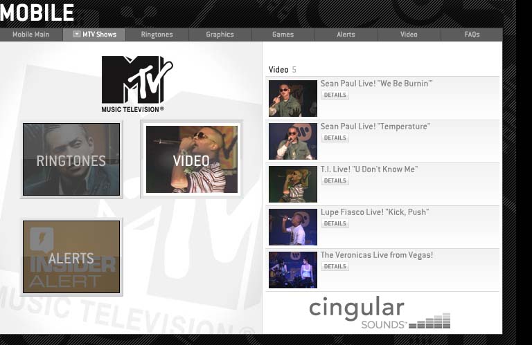 At CTIA, MTV Mobile announced its first made-for-mobile concert, which streams select performances by four Warner Music Group artistsSean Paul, T.I., The Veronicas and Lupe Fiasco - to wireless subscribers. All performances were taped during a joint event that MTV Networks Music Group co-presented with Warner Music Group during the CTIA conference.
