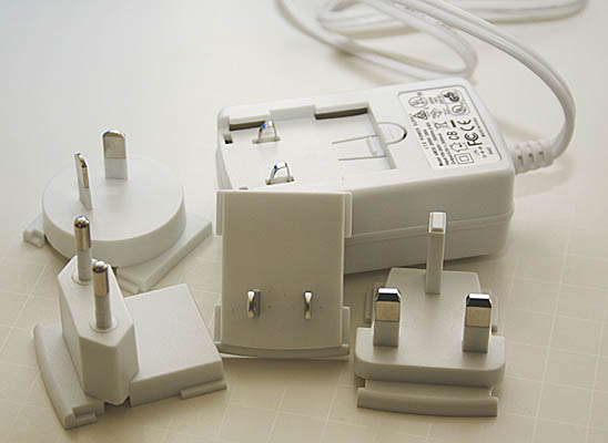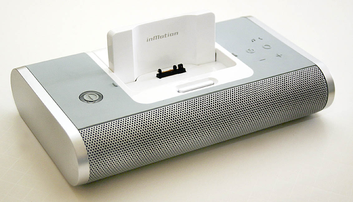 Power The inMotion works on four AA's, which don't come with it, or you can hook it up to AC using the included wall wart (complete with a whole kit of plugs for international compatibility). When it's powered from AC, the maximum volume is higher, and the bass response is a bit better. It's not bad on batteries, mind you, just better when AC-powered. This is probably a power-saving, battery-life-extending decision by the designers. I'd vote for better sound, instead.