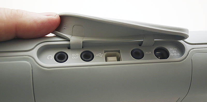 Sub Out - a 3.5mm jack accommodates the company's new powered subwoofer box. A $50 option , the subwoofer contains a 4-inch speaker to pump out the low frequencies. Forget specs again - there aren't any. You'd expect such a device to amplify audio below about 50 Hertz (meaning audio cycles per second, not rental cars). Stomp the bottom pedal in the lowest register of a large pipe organ, and you get a low "A", about 27 Hertz. Johann Sebastian Bach territory, for sure.