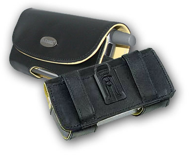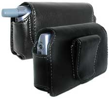 Next, a different style of pouch: the Nutshell Holster, $54.95. This 'lil rustler is a very durable product that clips on your belt and holds your Treo in a quick draw position like a cowboy's pistol.