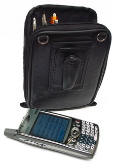 The vertical organizers' horizontal counterpart, affectionately named "Horizontal Organizer," offers a little less capacity, a sleeker, stylish look, a removable holder for cards, and a variety of options for toting it around - thread onto belt, or Velcro over belt or strap of some kind, or dangle it off your shoulder with the included neck strap. I used this one attached to my suspenders, and felt dumb. Snapped over the top of my pants for quick retrieval, it was fine. My Treo and a half-ton of other things stayed handy. Normally I have my Treo in a case in my shirt pocket, which leaves my reading glasses case to fend for itself in my hand or distend a pants pocket to a state of disrepair.