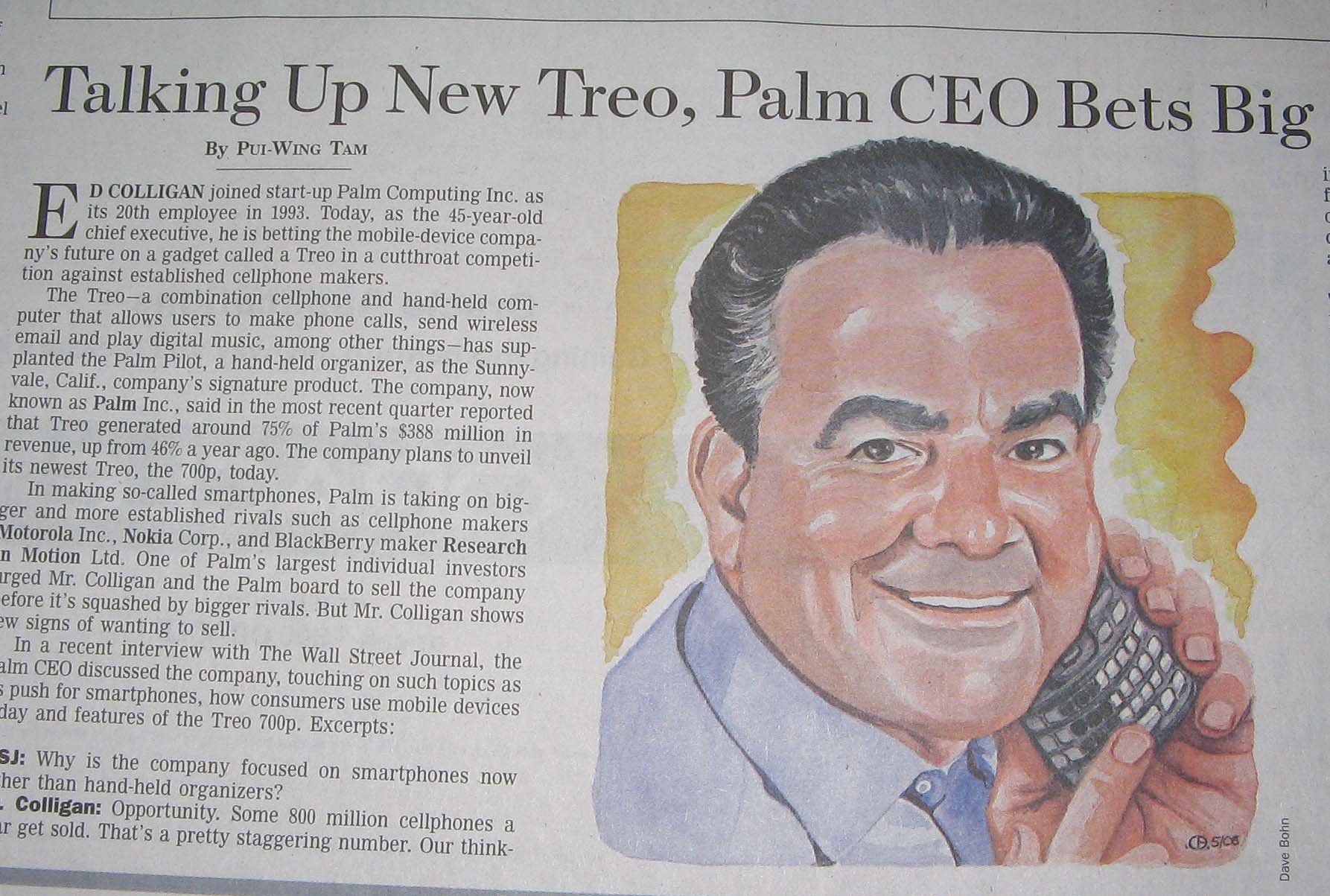 What you may not have seen was the "Q & A" (subscription required) with Palm's president and CEO, Ed Colligan that appeared inThe Wall Street Journal on Monday.WSJ: Can you tell us something about the new Treo?