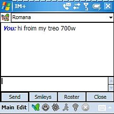 Compared to its competition, IM+ is fairly bare bones. Most of the fancy bells and whistles you may be accustomed to with your desktop version IM client are missing, but you can send emoticons (Smilies). But, what the heck, chatting online is the main object here, and you can do it on six different services at the same time on a handheld.