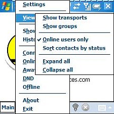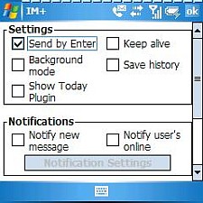 The developer included several new features in the Windows Mobile 5 version for Pocket PCs. You can run IM+ as a Today screen plug-in, if flagged, and itll display connected services, number of online/offline users, and number of unread messages for all users.