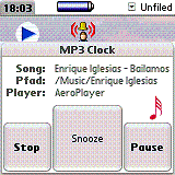 This looked interesting. Fabian Heuwieser has released mp3 Clock 1.0 that will allow you to wake up to your favorite mp3.