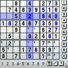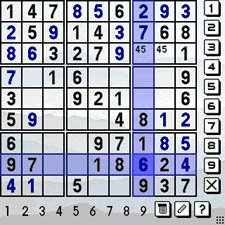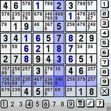 Astraware's Palm OS Sudoku handles all of the basics with panache. It provides hundreds of pre-made puzzles in six levels of difficulty from Beginner to Diabolical. While solving a puzzle, you'll want to jot a cell's possibilities in it as you narrow the choices. This is a process affectionately termed "pencilmarks" in Sudoku circles. Astraware's Treo Sudoku not only supports the marks, but conveniently permits toggling them as the possibilities narrow or change, and it remembers all of them for the entire board, even if you have to close and reopen the program. The marks appear by tapping their little icons on screen, or via the Treo's keyboard.