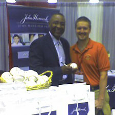 Conferences are typically boring, so I left my camera at the hotel. At lunchtime, I walked into the exhibit/dining area and found out that one of the companies had a Cardinal player autographing baseballs. Not just any baseball player — Ozzie Smith, "The Wizard of Oz" — one of the greatest players ever!