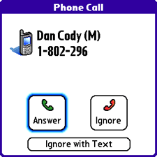 When receiving calls, the Treo 700p has added two nice features. The first, "ignore with Text" was a goodie that debuted on the 700w. This smart feature is a handy way to silently ignore a call, but still communicate with the caller. (Treo 650 users can add this feature for free with SharkMsg ).