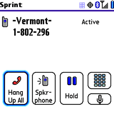 During calls, the Treo 700p has few changes from previous Treos which is a mixed blessing. Like other Palm OS Treos (but unlike the Treo 700w) the Treo 700p has big, easy-to-push screen buttons for its functions; hang up, speakerphone, hold, dialpad, and mute. This is a classic Treo feature that I have always enjoyed using. The big buttons make it easy to operate the Treo, even if you have fat clumsy thumbs.