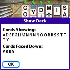 Forget extra "points" for using difficult letters and for creating longer words, there's no bonus but satisfaction. The program considerately forces a constant ratio of consonants and vowels. Though it might appear otherwise, all of the games are winnable, statistically speaking. Use the Undo button repeatedly, with impunity. You'll need it.
