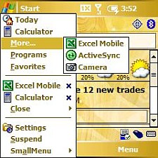 This one's the least invasive of all the task managers. You invoke it simply by tapping the Start button. It doesn't even assert its own icon anywhere. If you wish, you can install this program to a memory card. When it's running, you'll immediately notice a reconfiguration of the start menu. Today is on top with a list of the most recently run programs appearing beneath it. If the list gets long, there's a side arrow that drops down to display more of the recently run programs.