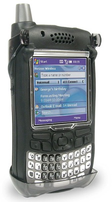 In fact, it looks as if Speck took the opposite approach that Palm did with styling: Instead of making their case design more Big-Brother 1984-ish, they opted for more curves and contours than their 650 case had, ostensibly clashing with Palm's scheme to make the new Treos look more business-like. But these Speck cases are designed for rough and tumble, heavy-duty protection, not as dainty accessories for fashion models.