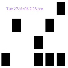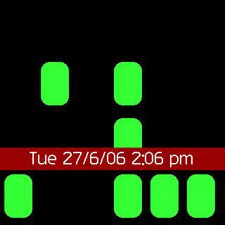 Thus, on a screen like the one below the time is 14:03, which you resolve by adding up the bricks in order from bottom to top, each doubling in value. A vacant space always equals zero, the lowest brick is one, and each next brick is worth double the one below it.