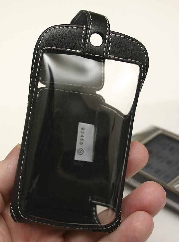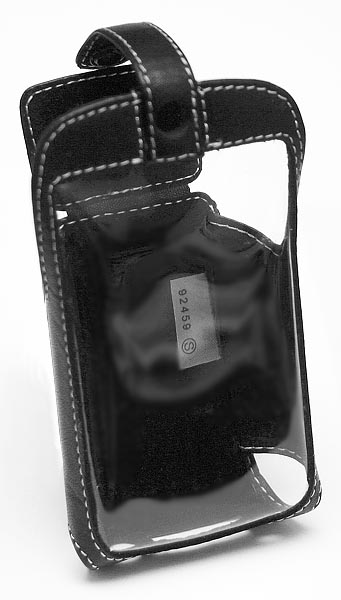 On the outside, the case's stitched leather construction puts up a sturdy barrier to the knocks, nicks, and whacks that Treos are likely to take while on the go. With its non-removable clip, the case expects to ride on your belt or tuck over your Speed-O. The button means it's not particularly comfortable in a shirt pocket, too bulky to stash anywhere else.