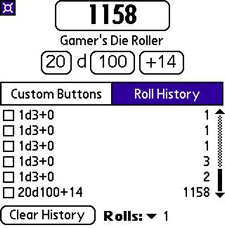 You use the display bar to roll your configured dice, and it displays the results instantly, even with intense rolls of a dozen d100s, and Roller will help you keep track of any or all of these obscene throws in the "Roll history" tab.
