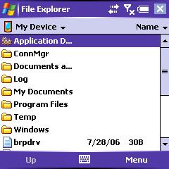 He finds his way to the "Programs" application. He notes that there is a subfolder for games instead of categories, but that the menu softbutton has disappeared; there doesn't appear to be an easy way for him to make new folders. He goes into the File Explorer and searches around.