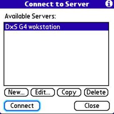 For some reason, there is no "Quit" option in PalmVNC's menus. This is problematic, as tapping the phone, calendar or other buttons on your Treo does not switch out of VNC. How do you get around this little predicament? Go to the "VNC" menu and select "System Network prefs", then tap the phone (or other program) button. Voila! You're now out of VNC and where you need to be. If for any reason your Internet connection starts behaving inappropriately, scold it by resetting your Treo. This happens from time to time when VNC doesn't close the connection properly; an unfortunate side effect, but manageable. It's not that frequent.