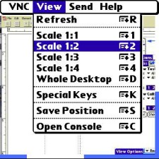 Moving around a huge computer's display on a Treo's 2 inch screen can be frustrating, and at times when your data speed gets slow, painful to do. If this is the case, tap your Treo's menu button and select from the "View" menu a different screen ratio. You'll probably find 1:2 to be usable, even to read text and perform operations, though tapping on tiny gadgets can be hit or miss.