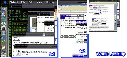 If you need to find something quickly, choose 1:3, 1:4 or Whole Desktop. 1:4 will probably display your entire desktop on the tiny screen anyway, Whole Desktop option aside, which means that text will be microscopic. Use this to find an open window in a hurry.