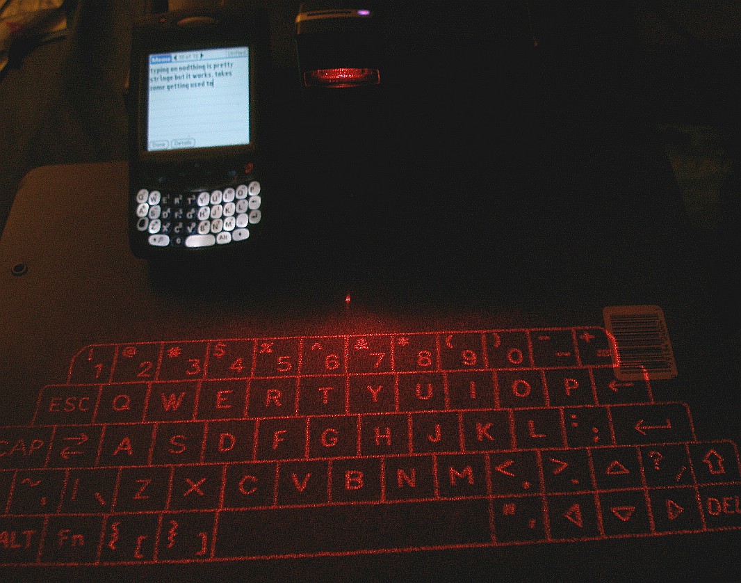 As a touch typist who can do 100wpm with a good tailwind, I found the lack of actual physical keys pretty disconcerting. Sure, there is audible "click" feedback as you type on what is basically a projected picture of a keyboard, but there is NO tactile springy feedback of real keys at all you're typing on an eerie glowing red, flat image of a keyboard. This makes touch typing difficult since you have to look at the projection to hit the right keys.