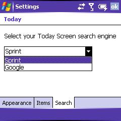 There are now two web-search options on the today screen. The new default is a Windows Live search (which is queried by a Sprint server, for whatever that's worth). You can set it back to the Google search if you like - the option is in a tab under the today screen's preferences. I would have expected the search option to be under the option button for the search plug-in.