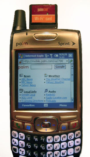 No WiFi. I have to mention that - it's practically archaic that a device this advanced doesn't have WiFi built in. At least the drivers for Palm's WiFi card are built-in and the card works great. In point of fact, you can surf via WiFi while on a call! I suppose that this would theoretically mean you could talk over Skype and the actual phone at the same time.