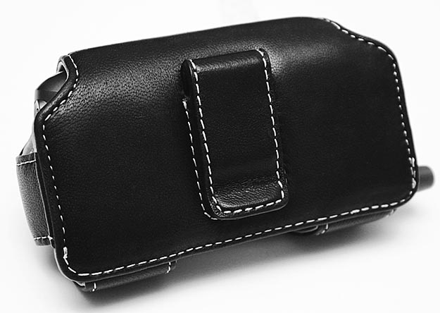The horizontal case clips your Treo at your side. The clip is permanently mounted and stitched into the construction, so there's no changing its orientation--unless you wear your belt over your shoulder.