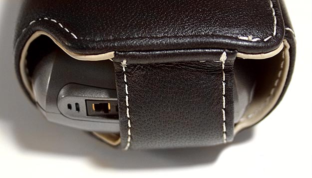 In some orientations, the Treo's charge socket is usable--mutually exclusive with the earphone jack. Except for that, you can't access the Treo's while it's in the case's clutches. The phone's ringer/vibrate switch is almost accessible, but not really. The side button shows through.
