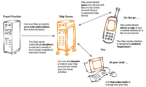 Skip is a website that provides users the opportunity to create trip itineraries and make them available for viewing via their Treo (and other mobile phones).