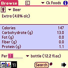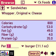 If you just want the database, you can access it online for free on the companys attractive and informative website. Admirably low-key in self promotion, the website offers the same search and browse functions as the Treo app, but it also displays Caloric Density information, which the handheld software does not.