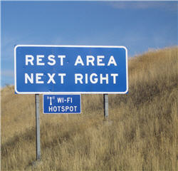 The trip started just fine. To my utter astonishment, we found a wireless hotspot at the rest area where highways 26 and 395 cross in Washington. I hope all rest stops will be hotspots. Soon!