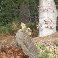 For lawn mowers, they use deer. Outside our window, I saw two bucks and four does grazing. Chipmunks abound, and you have to be careful of the bears and cougars. They caution you not to leave food in your room because critters will wander in and eat it.