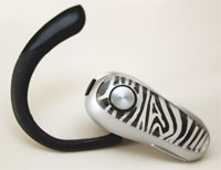 The Chameleon is a Bluetooth headset with a classy design and impressive specs for talk and standby time. Its recharged using an included charger that plugs into a skillfully hidden slot at the top of the device. A tiny rubber cover protects the charging slot from dirt, and the cover is hinged so it wont get lost (whew!).