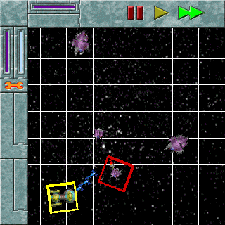 You can fly to a different star system by tapping on a star. Depending on your equipment, you might want to scan the system before you arrive. Depending on your sensor array, you may know that you're in for a fight just by the fact that your sensors have detected hostile aliens. If you try and fly through the purple nebula, your ship moves very slowly unless you have an upgraded nebular drive. There are upgrades available that can make your ship better in many regards. Initially, the easiest way to upgrade is to trade with the Klakar.