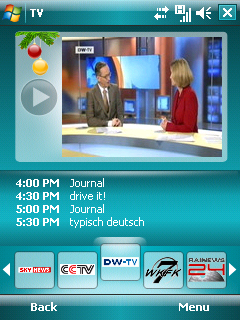 Spb's patent-pending mobile TV technology facilitates fast channel switching, on-screen controls, intelligent video/audio stream adjustment to broadband fluctuations, picture-in-picture mode, and an integrated TV guide with option to set outlook show reminders. Other Spb Online components are Online Radio, Online Games, global Weather service, News reader, and an On-Device Catalog.