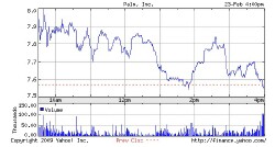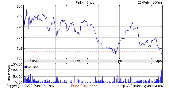 PALM closed at $7.55 on Monday with a flurry of activity at the end of the trading day. It is up in after hours trading.