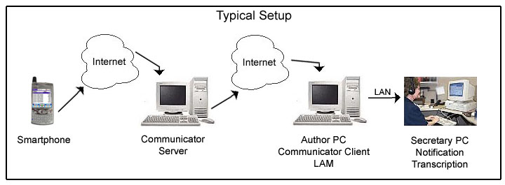 executives, etc. to document and communicate while in the field. Using your Treo, record with the Audacity Professional voice recorder and the Communicator software transfers the file using the cellular data network. It happens transparently and automatically in the background so it doesn't disturb your normal handheld usage. The file is placed in your normal desktop Audacity Recordings folder and then alerts your secretary or transcriptionist.