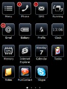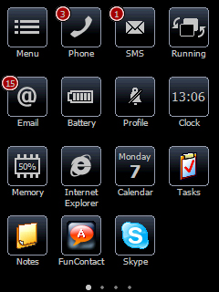The software allows you to define many different screens containing icons for applications, settings and contacts. You can flip between the screens using finger gestures (hmmm, think I've heard of that somewhere before). Icons representing applications like the phone, email, SMS, battery, clock, calendar and memory can even show additional information, such as number of items, etc.