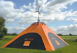 The UK cellular carrier Orange is providing free cell phone charging for attendees of the famous Glastonbury Music Festival, using free electricity. Powered by a windmill and solar cells, and standing more than 23 feet tall, the company's REcharge Pod is a self sufficient unit that looks like a tent and can charge up to 100 mobile phones at one time. The company expects the pod to accommodate thousands of mobile phones during the three-day "Glasto" festival, which begins June 27.