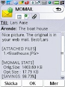 Momail is very easy to set up and use, and all emails are automatically optimized to the user's specific mobile model. The Momail user only has to select which email accounts will automatically be transferred to the mobile. And before the email reaches the mobile, an immediate and automatic optimization plus a spam and virus control will be performed.